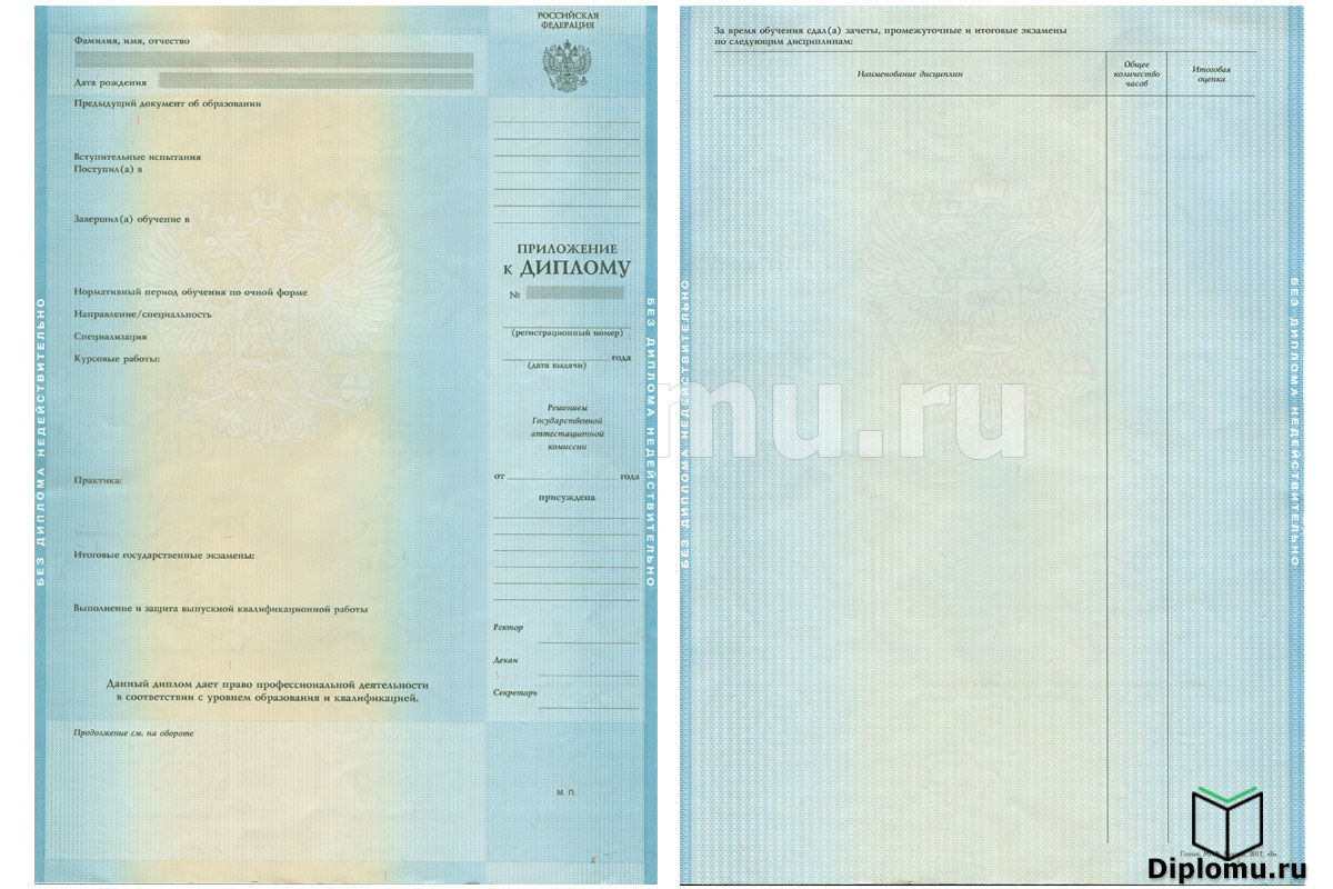 Приложение к диплому ВУЗа с 1997 до 2013 года при покупке отдельно; |