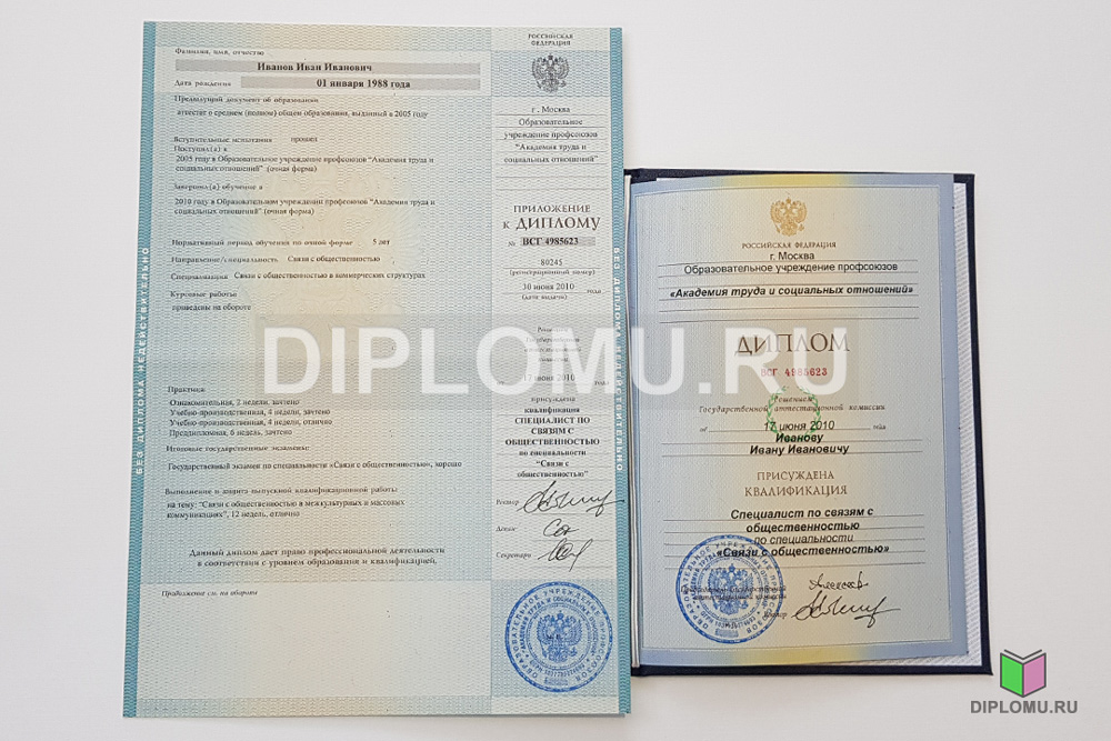 На нашем сайте Вы можете купить диплом об окончании любого ВУЗа России в 2010 или 2011 году. Ниже представлены фото и цена такого документа. Наши специалисты заполнят диплом по всем правилам, установленным Министерством образования и науки РФ. Заверяются «мокрыми» печатями и нужными подписями.